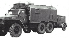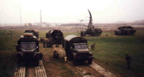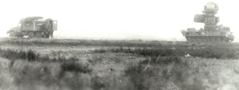 In der KBU gab es zwei große Sichtgeräte (STRELA-M, 45er Röhren), an einem saßen die beiden Operatoren und "markerten" mit mausähnliche Eingabegeräte (Manipulatoren) die Ziele ab (max. 10). Neben den Beiden saß der OOAkl des Regimentes und bediente den PRW. Am zweiten Rundsichtgerät saß der "Schießende des Regiments" (Regimentskommandeur) und neben ihm der Planzeichner. Im vorderen Teil saß der Funker. Der Stationsleiter stand meistens ganz hinten zwischen den Funkortern und mußte sie kontrollieren. Die automatisierte Zielzuweisung erfolgte per Telecode (Data-link)an die KPZ. Es wurden Seitenwinkel, Zielentfernung und die Zielhöhe übertragen. Ausserdem konnten 24 verschiedene codierte Signale übermittelt werden.Voraussetzung einer fehlerfreien Zielzuweisung war die korrekte Vermessung der Stellung der zuweisenden Funkmeßstation, der KBU sowie der KPZ und der ALS. Wie die KBU verfügten auch die KPZ über Rechentechnik mit Ferritringkernspeicher und einer Taktfrequenz von 65536 Hz! Die Parallaxenberechnung erfolgte demzufolge digital. Die Anzeige des zugewiesenen Seitenwinkels, der Zielhöhe sowie der Entfernung erfolgte mit Drehinstrumenten. KBZ der 1.FRBttr angeschlossen an die 1S91 (Photo: Quellen 2) - TÜ "Brisanz" Die KPZ war mit einem 50m Kabel mit der ALS/1S91 verkabelt so dass direkt vom Gefechtsstand die Antenne der 1S31 (Leitstation der ALS) auf das Ziel gerichtet werden konnte. Außerdem wurde auf dem Rundsichtgerät der ALS die Zielzuweisung mittels einer Marke angezeigt. Die Telecodeübertragung zwischen KBU und KBZ konnte per Funk (2x R109 mit Leistungsverstärkern und 9m Teleskopmast) oder Drahtverbindung erfolgen. Durch Einsatz des K1-Komplexes konnten die obere Grenze der Vernichtungszone des FRK 2K12 auf 11.000 m verbessert werden. Ein weiterer Vorteil bestand darin, dass ohne Abstrahlung durch die 1S11 gearbeitet die Abstrahlzeit für die 1S31 verringert werden konnte. Durch die Verwendung kodierter Signale konnte auf den Sprechfunkverkehr zum Gefechtsstand verzichtet werden, zumal die Telecodeverbindung als relativ störsicher galt. Ralf Wagner, 2003