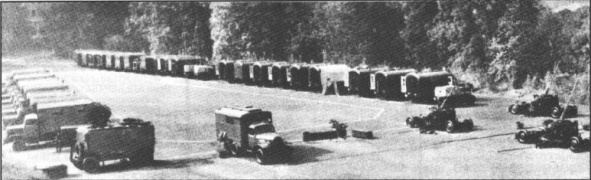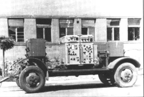 | Aufnahme von einem ungarischen Flakregiment in den 60-er Jahren. Im Vordergrund von links nach rechts: GRS-9, E-2BD auf Zil 157, Verteilerkästen und ein Flak-Zug S-60 (Foto HADITECHNIKA 2/1995) | |||||||||||||||||||||||||||||||||||||||||||||