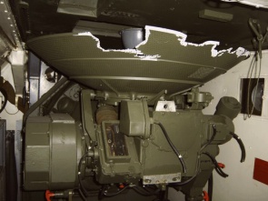 Foto: abgesenkte, beschädigte Antenne der RPK-1 Da die weitere Vorgehensweise abgestimmt werden musste, dauerte es ein gutes Jahr, bis wir durch einen zweckgerichteten Tausch die "Mödlareuther RPK 1 M1" erhielten. Somit konnten wir daran gehen, eine RPK 1 M1 wieder aufzubauen. Im September 2004 wurde der Transport des Basisfahrzeuges der RPK 1 M1 von Mödlareuth in die nähe von Leipzig durchgeführt. Da wir uns als Verein keinen eigenen Tieflader leisten können, wurde der Transport durch den Tieflader der Firma BAG-Trans durchgeführt. Wie immer unterstützte uns der Fahrer des Tiefladers hervorragend, so dass der Lade- und Entladevorgang jeweils nur eine ¾ Stunde dauerte. In unserer Arbeitshalle angekommen, konnten wir mit Freude feststellen, dass dieses Basisfahrzeug der "RPK 1 M1" seinen Tausch Wert war. Die für uns wichtigen Anbauteile sind vorhanden und in einem guten Zustand. Im Kofferaufbau selbst sind die Gestellrahmen vorhanden, die Parabolantenne (wie bereits bekannt) beschädigt und der Kofferaufbau trocken. Dagegen sind fast alle Stecker vom Kabelbaum abgeschnitten. Der Wiederaufbau der "Mödlareuther RPK 1 M1" teilt sich in die Überprüfung / Instandsetzung des Basisfahrzeugs vom Typ Ural 375 E3, dem Wiederaufbau des Koffers und der Vervollständigung der Antennensäule KW-17 incl. dem Parabolspiegel. Davon Seiten des Vereins kaum Geld für den Wiederaufbau und die damit verbundenen notwendigen Instandsetzungsarbeiten zur Verfügung gestellt wurde, mussten einige Kompromisse beim Wiederaufbau eingegangen werden. Das Basisfahrzeug ist aus dem Jahr 1974 und wurde wie die gesamte Station 1988 in einer Instandsetzungseinheit generalüberholt. Das Basisfahrzeug erweist sich seinem Alter entsprechend in einem guten Zustand. Da das Basisfahrzeug jedoch die letzten Jahre in einer Halle gestanden hat, ohne das es für eine längere Standzeit entsprechend konserviert und aufgebockt wurde, sind einige Instandsetzungsarbeiten zu erledigen. Dies ist u.a. bei den Reifen bzw. der Reifenregeldruckanlage, dem Motor, der Lichtmaschine und dem Vergaser notwendig.